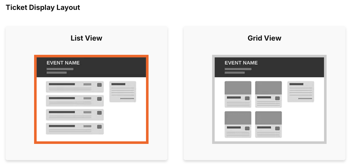 Ticket Display Layout: Choose between standard List View ticket display layout or Grid View