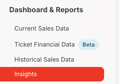 To view insights data, go to "Insights" under "Dashboards & Reports" from the event left navigation menu.